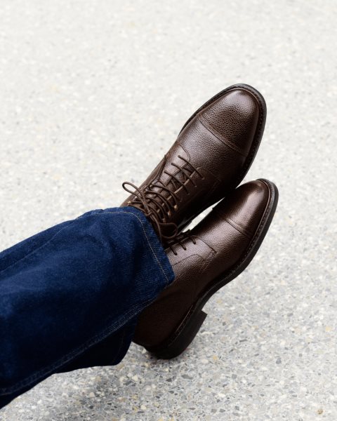 Goodyear welted construction Handcrafted in Portugal Premium water repellent waxed suede from Charles F. Stead Vibram outsole Padded insole Leather board heel stiffeners and cork filling
